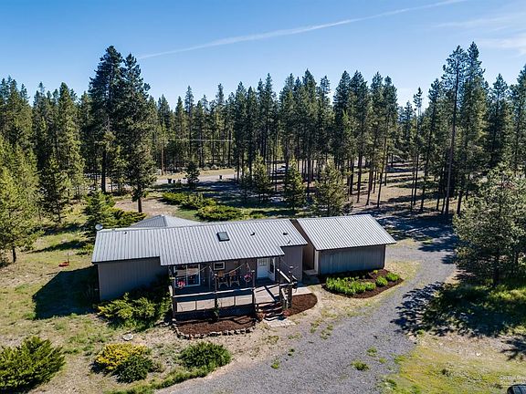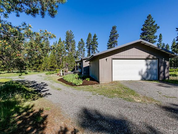 Come and enjoy the peace and serenity that country living provides with this adorable home on 2.34 acres of flat, beautiful, build-able land. Features detached 800 sq ft shop with power and propane heat as well as a detached 2 car garage. Tons of privacy and both elk and deer wander all the way up to the home; all with an only 5 minute commute into La Pine! Excellent 3 beds and 2 bath semi updated home with open floor plan. Kitchen with pantry, bar seating on large peninsula and large slider door out onto a great deck. Perfect for entertaining. Build your dream home and use this as a second home. Well and Septic.