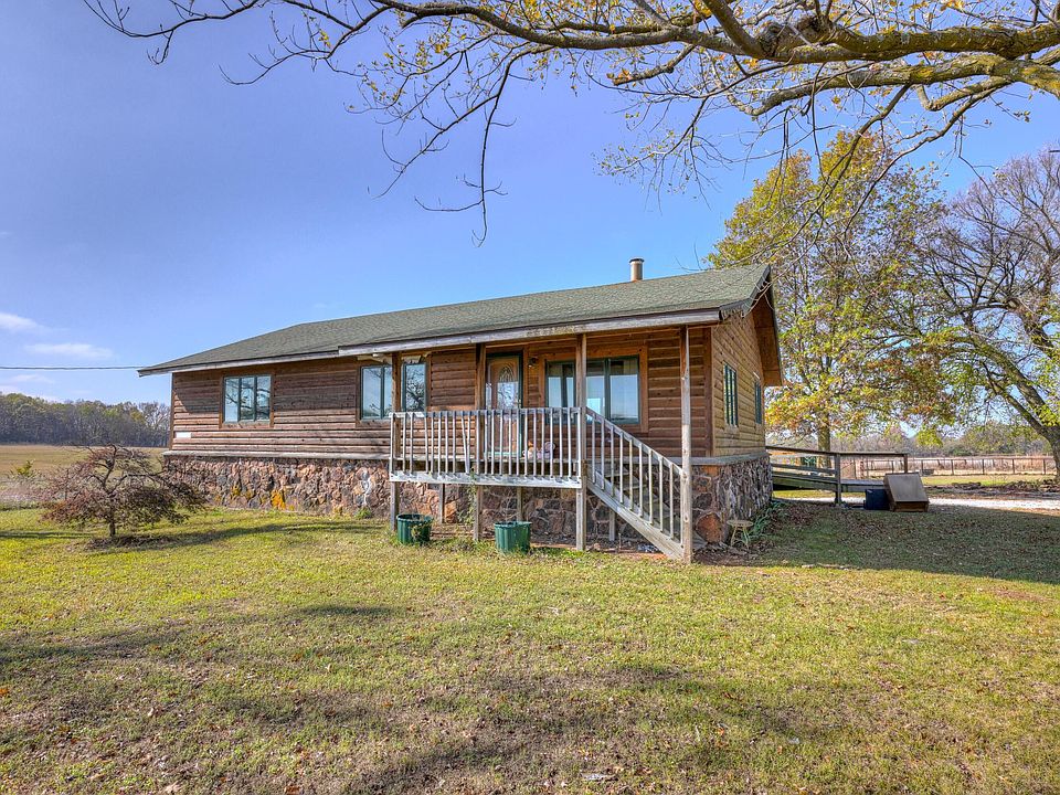 With sweeping panoramic views of the countryside, this inviting and renovated home sitting on 20 beautiful acres is your new slice of paradise! Thoughtfully updated to maintain character and charm, the new flooring and natural stone accents welcome you into the living space with a functional, cozy fireplace. The large kitchen provides an abundance of natural light, unique island and new appliances. Spacious bedrooms provide ample space to relax and unwind with stylish wallpaper and custom wainscoting. You'll love the chic laundry room that's fresh out of a home design magazine! Outside, the large storage building and barn with corral and chute are livestock ready, while the fenced pasture provides plenty of grazing or recreational space. Make this unique property your peaceful haven!