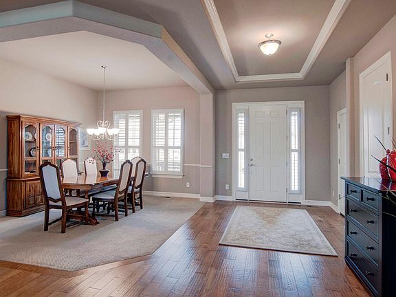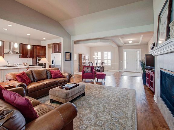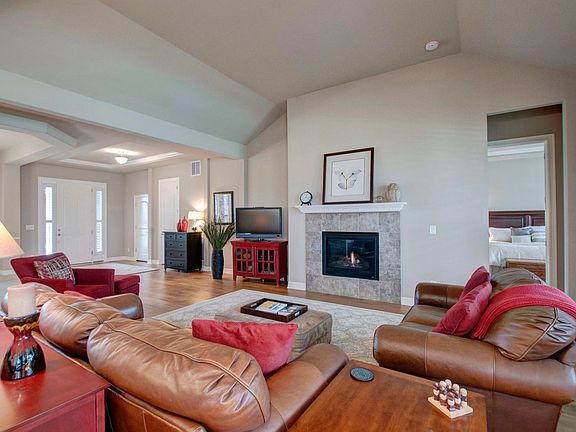 Popular Toll Brothers Warren floorplan with expanded Grand Master Suite in Anthem Ranch. Built 2014. Premium lot backing west on greenbelt with trail and GREAT VIEW of Long’s Peak. 2 bedrooms, den and 2 1/2 baths. Many, many upgrades highlighted by beautiful kitchen White Springs granite and mocha cherry and ivory maple island cabinets. Stainless steel appliances. Extra laundry room cabinets and custom coat closet at entry. 8 ft. doors, 10 ft. ceilings and dramatic 12 ft. ceiling in great room with fireplace. Tray ceilings in entry and master. Unfinished basement with rough-in bath and 5 window wells with security covers. Oversized three car garages with drywall. Plantation shutters. Upgraded carpet, tile. Handscraped maple hardwood in entry, great room, kitchen and den. Covered Trex deck. 2453 fin. sq. ft. Better than new! Anthem Ranch includes 32,000 sq. ft. clubhouse with fitness, indoor and outdoor pools, jogging track, tennis, billiards, more. 48 miles of trails; lakes, parks.