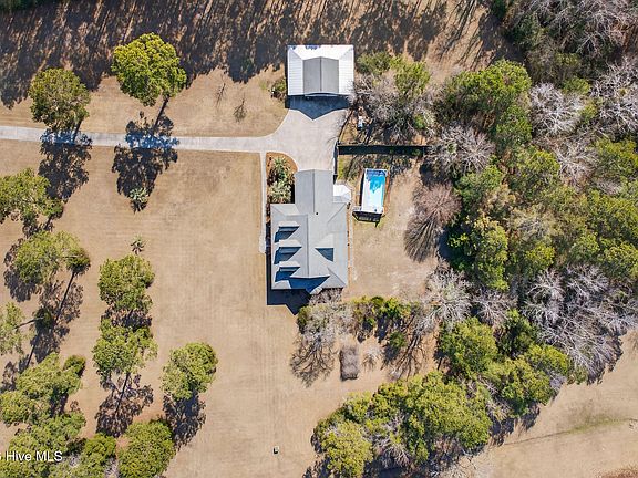 Ready for a taste of the good life? Slow down, breathe deep, and embrace the rhythm of coastal living at this sprawling private estate located just 3.1 miles from the crystal-blue waters of Ocean Isle Beach. Situated on 6.9± acres, this custom-built, 3,500-square-foot home was constructed under the meticulous oversight of an Army Corps Engineer, offering thoughtful design, structural integrity, and enduring quality throughout. Inside, you'll find five spacious bedrooms and four full baths, a formal dining room perfect for gathering, a bright sunroom, and a private sitting room just off the primary suite, the ideal spot to enjoy quiet sunrises with a cup of coffee in hand. Step outside and experience your own private retreat. The fully fenced backyard provides room for four-legged companions to roam freely, while the above-ground saltwater pool offers the perfect place to cool off on warm Carolina afternoons. Need space for hobbies or storage? The 23x23 wired detached building is ideal for boat storage, woodworking, or a dedicated workshop. The estate also features a freshwater pond and wooded acreage teeming with wildlife, where deer wander and wild turkey occasionally pass through, a daily reminder that you truly have space to live. Designed with low maintenance in mind, the home includes a fully encapsulated crawlspace with a dehumidifier, all-brick exterior construction, and durable vinyl soffits for long-term peace of mind. Opportunities like this on nearly seven acres, just minutes from the beach, rarely come available. The Links at Brick Landing, a public golf course, is located just across the street. Can it get any better than this? Don't wait on the good life. The good life is waiting on you.