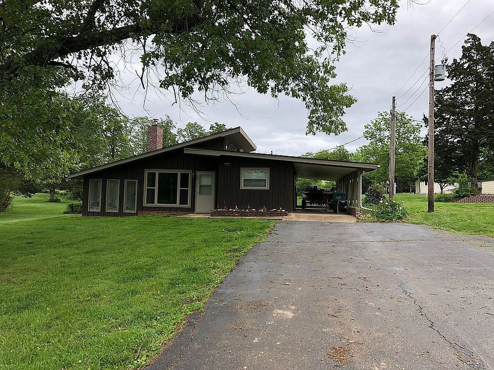 Ranch home just outside of town on 1.42 acres. Home has lots of character with wood burning fireplace, vaulted ceiling, and all new upgraded flooring in all rooms. The kitchen has wood cabinets which have been freshly painted, and all appliances. Sunroom has numerous windows, new carpet (possible 3rd bedroom) and walks out to the new back deck. Laundry room comes complete with pull down ironing board and washer/dryer/water heater. Yard is beautiful, level, and has numerous large shade trees. Paved driveway with carport. Home has many updates includes: roof (less than 5 years), exterior storm doors, deck, detached workshop, new well house with electric and concrete floor, new windows (except sunroom), flashing and tuck pointing on chimney, all new carpet, remodeled bathroom, and freshly painted (grey and white color scheme). Perfect location for peace and quiet with close, easy access to town. A must see!