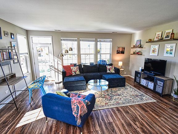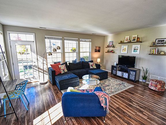 Beautiful light filled updated 1st floor end-unit ranch townhome. Updated flooring through-out. Large updated kitchen with lots of cabinet storage space, newer stainless appliances, lighting & more. Dining area. Primary bedroom features great accent wall, big walk-in closet with custom shelving and updated bath with double bowl vanity. Updated 2nd bathroom. Laundry room HE washer and dryer. Water softener. Central air and heat. 2 car garage. Large private driveway, backs to park & walking path. Minutes from major stores, parks, library, and I-90. A must see so don't miss out on this great opportunity.