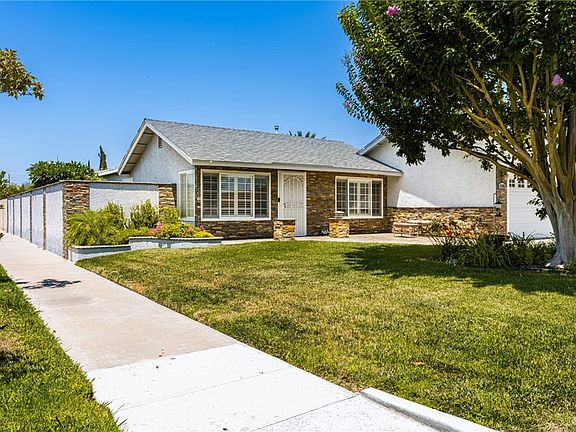 Welcome to 1586 N. Milford Street, a beautiful single-story home in a prime location within the city of Orange. This home sits on a corner lot, has lush landscaping, stacked stone facade and an extra-large paved driveway with a two-car attached garage. Inside is as clean as it gets, wood laminate flooring, recessed lighting, crown molding and plantation shutters. The family room has a fireplace with built-ins on both sides, a sliding glass door to the back yard and is open to the kitchen. The chef’s kitchen is nice with granite counters, stainless steel appliances and an abundance of cabinet/storage space. A separate eating area for diners and a breakfast bar in the kitchen for morning breakfast. Out back there is a large yard, a sparkling swimming pool with a rock waterfall and a large covered patio for afternoon outdoor enjoyment.The garage has two walls of enclosed storage. This location is prime with a park and biking trails nearby, plenty of shopping and dining.