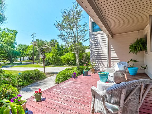 Current owner held a SHORT TERM RENTAL license in the past and short term rented the property via Airbnb. Per Charleston County this property is still eligible for a STR license and Charleston County does not cap the amount of licenses they issue. LOCATION, LOCATION, LOCATION - only 1.5 miles from the new Folly Beach Pier and 15 minutes from the Peninsula! 1586 Oak Island is one of only two homes on the street with its OWN BOAT LANDING! Put your stamp on this Mid-century modern home with gorgeous tidal creek and marsh views, dock house and pool. Watch the sunsets over the creek and marsh from your back deck. Roof was replaced in 2017 and HVAC in 2019, Pool pump also recently replaced. Inside you will find a large open family room and dining room with vaulted ceilings, gas fireplaceplus a sun room overlooking the pool, creek and marsh. Down the hall are two secondary bedrooms, a full bathroom plus the main floor primary suite with en suite bathroom and walk-in closet. The laundry room is off the kitchen and there is a large FROG. that will make a great secondary living space, play room, media room or even a 4th bedroom. There is a one car garage attached as well as a potting shed with additional storage. There is so much potential with this home!