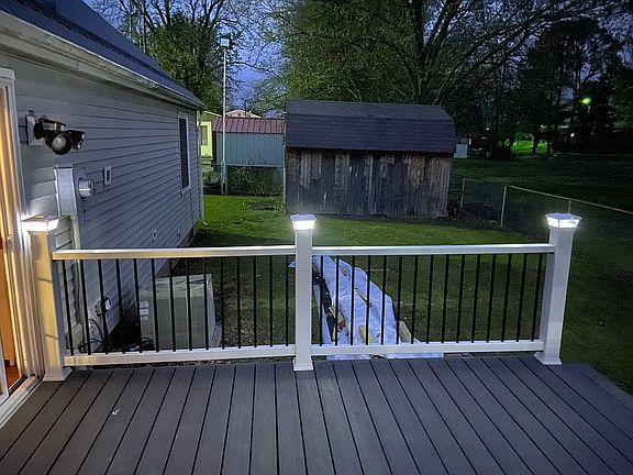 4 bedroom cape cod home with gas furnace, gas water heater both purchased 2018 new front porch built on in 2019 with new metal roof over house and porch 2019upstairs is finished drywall with water and heat access for extended bathrooms, plenty of closet pace, two outside utility sheds for additional storage. New deep well water system installed 2020, vinyl fence enclosure around back yard. Replaced deck and hand rails 2020