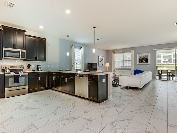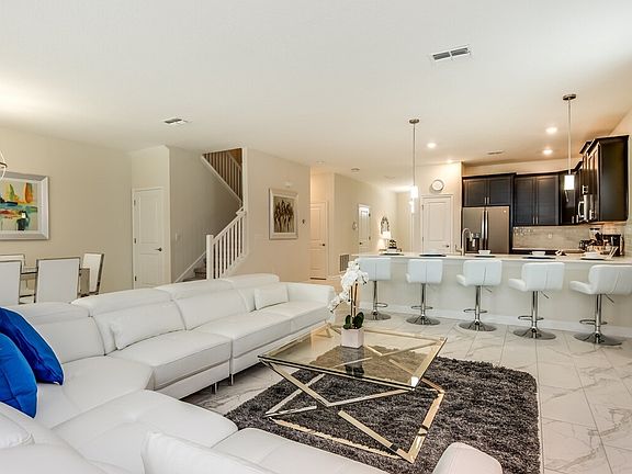 Luxury vacation home with private pool. FREE internet ,FREE lawn care! 2018. With 8 bedrooms and 5 bathrooms, located in Champions Gate. It comes fully furnished, with a private pool, a game room. Being a spacious location of 3,812 sq. ft, this home can comfortably accommodate up to 17! Pool and Spa are heated nice and warm .You will then come across the first floor that provides an open and spacious living room area with a large TV, a fully equipped kitchen, a dining table that seats 8 guests, and an outdoor breakfast bar that sits 6 a child feeding chair. On the first floor is a Master bedroom with a king size bed and another bedroom with a king size bed. One of the bathrooms has a door straight out to the pool for your convenience. The other 6 rooms are located in the upper level. Two themed bedrooms with twin beds in each, one room with a full bed and a pull out bed, two rooms with queen beds, and the last bedroom with a king bed! You will also find the family-styled share bathrooms which connects some of the rooms together. On this upper level is also where you will find a second living room with sofa bed, games room and indoor movie theater. You will have FREE access to the Champions Gate Oasis Clubhouse and they will assist you with pricing for the Golf Course. The activities in the Club House include: Resort style pool with a water slide and cabanas, Lazy River & Splash Park,Jacuzzi,Tiki Bar, Restaurant and Gym and more.