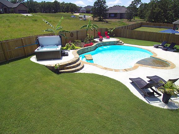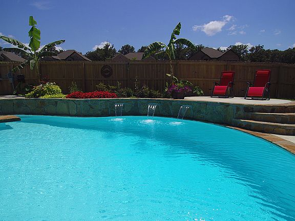 BUYER'S AGENT WELCOME! Here is your opportunity to own a home that has everything. This 4 bedroom, 2.5 bath custom built home will catch your eye with a beautiful backyard featuring an inground swimming pool, plenty of natural stone work, a lush flower bed and a hot tub that conveys. Don't worry about messing up the floor when you come in from swimming in your new pool, this house has stained concrete throughout. This home has a chef's kitchen featuring a gas stove top and electric wall oven; added features include hidden spice racks, pot filler, and stemware rack. Don't worry about staying in the custom master shower for too long, as this home comes equipped with a tankless hot water heater, making cold showers a thing of the past. Do you need storage? Whether you need garage or attic space, this house has you covered. Two floored attics above two separate two car garages leaves you plenty of room for all of your toys. If you still don't have enough room, there is a parking pad behind the fence to allow for the storage of a trailer. This house has even more extras to talk about, wired internet in every bedroom, dual zone surround sound wired in living room and outdoor area, outdoor fireplace and to appeal to the safety minded, a built in safe and a below ground storm shelter. *TV's above fireplaces, multi-zone surround sound, and CCTV surveillance system may convey with acceptable offer. **Should the built-in safe not appeal to you, seller will pay to have safe removed and wall closed in. Square footage is estimated. Measuring is encouraged.