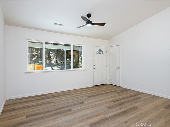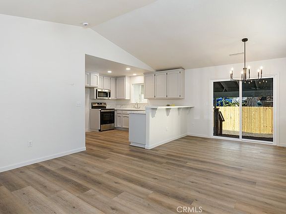 Fully renovated cottage on Cobb Mountain. This delightful 2-bedroom, 1-bath home offers a perfect blend of modern updates and cozy mountain charm. Step inside to beautiful new flooring throughout, with an open floor plan. Living room with vaulted ceiling and ceiling fan creates an open and airy feel. The dining room is adorned with a stylish chandelier and provides easy access to the private, fenced backyard- perfect for outdoor dining or relaxation. The kitchen has been updated with quartz countertops, a new range, microwave and an open layout that flows seamlessly into the dining and living areas, ideal for everyday living. New central heat, new water heater, new roof. Additional laundry/utility room plus one car garage and large storage shed. This move-in ready cottage is a true gem, offering comfort, style, and the peaceful serenity of Cobb Mountain living.