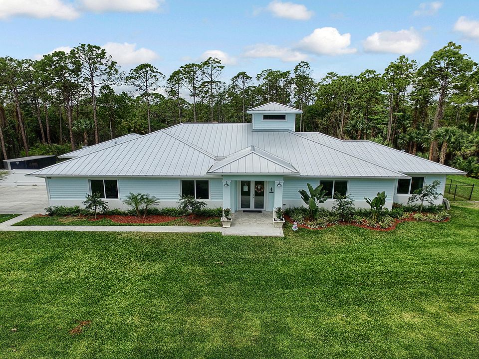 Absolutely incredible house in Palm Beach Country Estates !! This new construction home has everything you could ever want in a house! CBS, impact windows, standing seam metal roof and real wood floors! Not to forget a custom island in the kitchen, high ceilings and the best back yard in Palm Beach Gardens! This back yard has a HUGE pool, hot tub/spa and a sunken area (under a tiki hut) with a fire pit, grill and seating area! The lot size is 1.17 acres! Make sure to check out this amazing house!