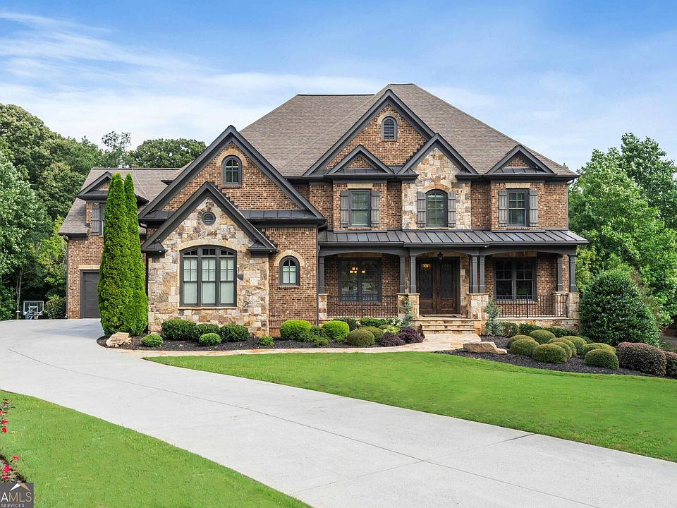 This stunning 2.25 acre estate is nestled within The Manor Golf & Country Club at the end of a tranquil cul-de-sac. As you step inside, you'll be greeted by the sophisticated formal dining room featuring stunning decor and a distinguished executive home office embellished with exquisite wood paneling. The formal living room showcases a beautiful oversized fireplace and floor-to-ceiling windows that bathe the house in natural light and offer a breathtaking backyard view. The expansive chef's kitchen overlooks the soaring vaulted family room and the inviting informal dining area. It features a generously sized kitchen island and breakfast bar, accompanied by built-in cabinets offering plenty of storage space. The kitchen is graced with stunning, top-of-the-line appliances. Off of the family room is access to the back patio, which is great for entertaining and enjoying the outdoors. The home features a conveniently located bedroom and bathroom on the main floor, complementing the four additional bedrooms and bathrooms located upstairs. Each bedroom is meticulously finished with its own full bath and walk-in closet, adding a touch of luxury and convenience to the living space. The primary suite is a standout feature, offering a spacious sitting room with a cozy fireplace, three walk-in closets, and a luxurious spa bath and shower. The en-suite bathroom is thoughtfully designed with double vanity sinks and his and her closets on either side, providing plenty of storage space for personal items. The terrace level is designed to provide a complete entertainment experience, while also featuring a bedroom with a full bath. The spacious terrace level offers versatile living space, direct backyard access, a convenient full bath, and a private movie room. It's a blank canvas, ready to be transformed into your ideal space for relaxation or entertaining. As one of the largest lots in the neighborhood at 2.25 acres and its luxurious amenities, such as the private basketball court and media room, and practical layout, this home is tailored to meet the needs of homeowners who appreciate both style and functionality. Within this guard gated private neighborhood in Milton, residents enjoy privileged access to the amenities, including an 18-hole championship golf course, indoor and outdoor tennis courts, indoor and outdoor swimming pool, fitness center, dining area, clubhouses, spas, kids club, and much more.