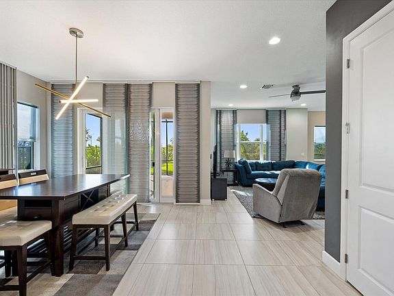 Wow, beautiful rarely available Azalea model. This home has custom features that no other Azalea has. Located in the sought after Meadows of Westlake community, this home boasts tasteful upgrades for the fussiest of buyers. Gorgeous, chef's dream kitchen with 42'' white cabinets and modern quartz countertops, a custom built in pantry, wall oven and gas cooktop. Beautiful built in fireplace in great room. Dining room has custom wood decorative walls. Custom designed den perfect for lounging in front of your big screen or snuggling up with a book. Stunning Bamboo flooring on second floor and stairs. Oversized master bedroom with beautiful bath and upgraded cabinets and countertops. Pebblerock shower floor. Second bedroom has been enlarged from original builder floorplan. Upstairs has a loft and big laundry room. This home has very nice roller shades throughout. Impact windows throughout entire home. Gorgeous fenced yard. Let us not forget the sunset, from your extended, screened lanai. Beautiful lake view and 3 car garage! Resort style amenities including a lagoon pool with 3 story slide, splash pad, cabanas, lawn space for parties, outdoor concert pavilion, basketball courts and adult pool (coming very soon), adventure playground, dog park, pump park for BMX enthusiasts and much more. Excellent schools and great shopping on the way! Priced to sell!