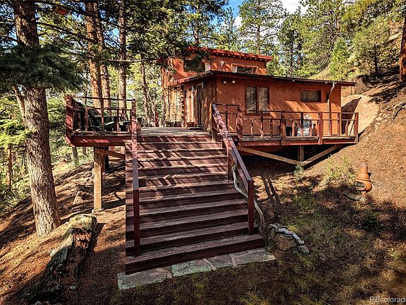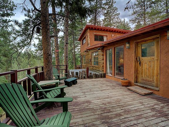 PRICE IMPROVEMENT! This one is a must see! Treehouse. Mountain Cottage + SW Vibes. These are just some of the words that I think of when I explain this beautiful property! The 4.4-acre property includes full access to the HUGE rock outcroppings on the property. These owners have used this home as a 2nd home for 20+ years, no renting, and have kept the historical charm in mind when updating this 1950's cabin. The combination of the D-Logs + the stucco and terracotta tile flooring exude a wonderful SW style and feel. These owners pride themselves on the full feng shui atmosphere when it comes to the layout of the cabin. For example- windows on two sides of rooms to add plenty of light. Natural redwood decking. Metal Roof that blends into the landscape. Copper gutters. No sheetrock. "Auro" oil from Germany used to finish the interior D-logs. This unique beautiful, private park setting allows you to completely give in to nature and your surroundings. Imagine waking up each morning to having coffee on your deck, basking in the sunlight and listening to the chirping birds around you.