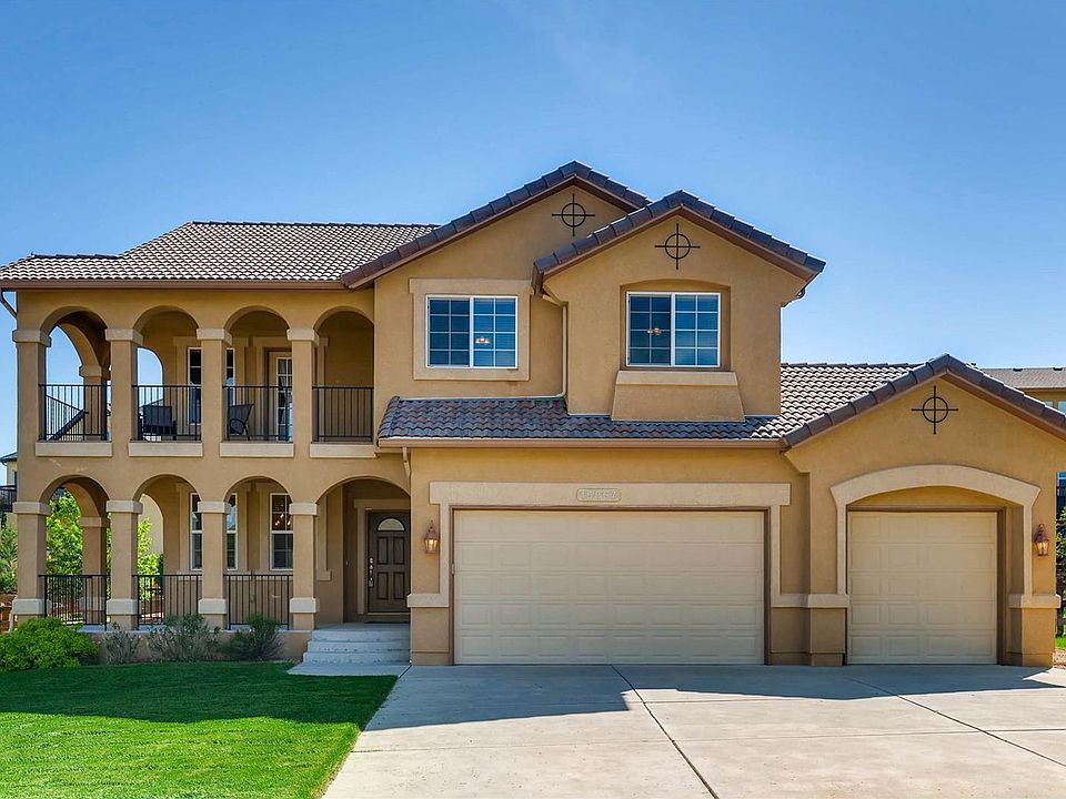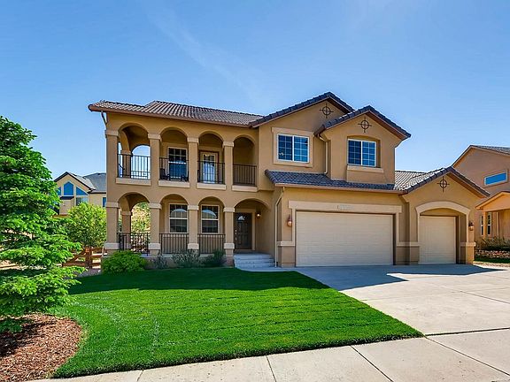 Exciting Saddletree Design*Loaded w FEATURES*Excellent flow, functionality & attention to detail*Massive AFA & Mountain views including Pikes Peak*Generous hardwood floors thru-out main lvl*Spacious Formal Dining, Cooks dream kitchen w SS appliances, center island w/ cooktop & walk-out to fenced yard*Great room with custom stone surrounded gas fireplace *Master retreat w private decking, 2 sided fireplace, sitting area & ample closet space*2 addt'l bedrooms, full bath & laundry complete the upper lvl... * This home has a full finished basement boasting a very large recreation room, spectacular guest suite (4th Bedroom) and access to the 3rd full bath * This feature rich property includes custom, staggered cabinetry with crown molding, newer carpeting, new hot water heater, humidifier, central air conditioning, vaulted ceilings, multiple ceiling fans, creatively placed arches / niches, 2 gas fireplaces, walk-in pantry, fully fenced rear yard with sprinkler system front and rear, multiple outdoor entertaining areas to include the expanded front porch, low maintenance stucco exterior with an upgraded tile roof * Conveniently located to I-25, shopping, parks, award winning schools and easy access to Denver * This property has been immaculately cared for to include the impeccably maintained landscaping and so much more * Whether you are watching the Thunderbirds perform from your private deck or catching one of the many viewable firework shows from this location.