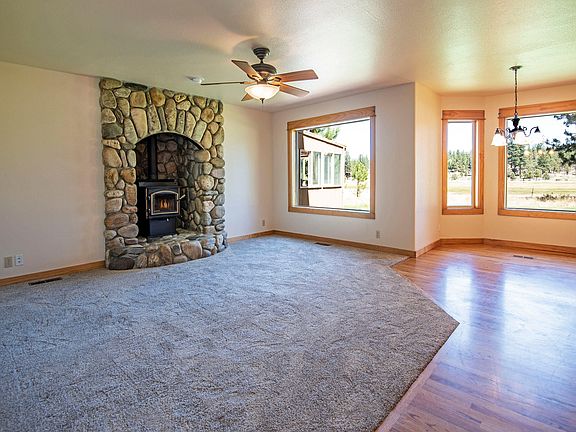 Backs up to the Indian Ford Meadow! ¼ mile from the Deschutes National Forest! 2 story home located in the desired Sage Meadow neighborhood. Updated 4 bedroom, 3 bath, 5,361 square foot home with potential of more bedrooms. Kitchen features, stainless steel appliances, double oven, 6 burner propane range with knotty alder cabinets and granite countertops. Knotty Pine ceilings, wood stove surrounded by real river rock. Master bedroom upstairs, updated master bathroom, large walk-in closet. Entertainment room with kitchen area, ½ bath, including large screen/projector and sound system. Exercise room and Bonus room, office with propane rock fireplace. Huge deck out back with hot tub maintained and ready to use! Propane stubbed for BBQ, freshly stained exterior. Lots of storage and many upgrades throughout.