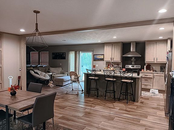 This well maintaned and spacious home is bright, airy, and loaded with beautiful finishes. Featuring a split floor plan, loads of storage and thoughtful design features, including smart climate control, Ecobee and eco-friendly windows. The kitchen includes a large island with a stainless steel sink built in for ease, and stainless steel appliances throughout. Light wood textures brings the character with a touch of sage green as well in the cabinetry. The primary suite features a large soaker tub and two walk in closets. The house can be moved or it can stay on the 1 acre lot for an additional monthly fee. A storage shed sits on a slab on the lot with large mature trees in a private and rural landscape. This home will not last long, contact today to schedule your tour. Property sold as is. Buyer or buyer's agent to verify all information during due diligence.