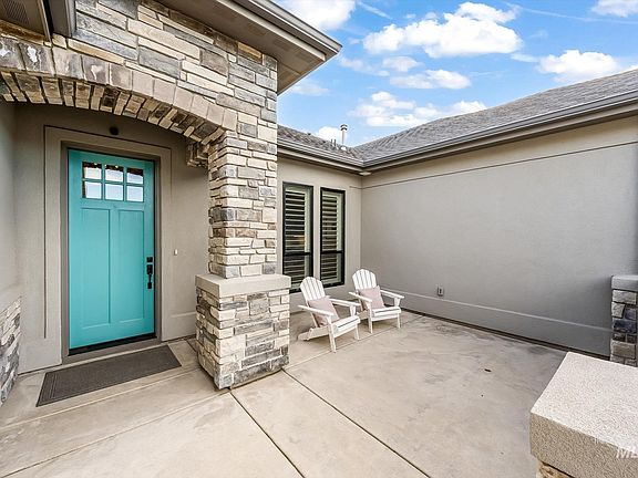 This home is situated in the highly sought-after Williamson River Ranch subdivision in Eagle, Idaho, providing convenient access to the Boise Greenbelt & numerous trails & ponds. Constructed in 2019 by Todd Campbell, it features a classic design with luxurious upgrades throughout. The kitchen is equipped with top-of-the-line Bosch & Thermador stainless steel appliances, a built-in wine cooler, instant hot & cold filtered water, a double oven, and a warming drawer. The entire home boasts 10-foot ceilings & abundant natural light through large windows fitted with custom blinds. Master bathroom offers timer-operated heated floor, double vanities, quartz countertops, and custom backsplashes. The RV garage bay accommodates 2 cars in tandem, adding to the total of a 4-car garage. The outdoor kitchen includes a gas grill, built-in fridge, patio heaters, and fan, all enclosed with motorized screens controlled remotely. A water softener & Coltrin whole-house vacuum system are also included.