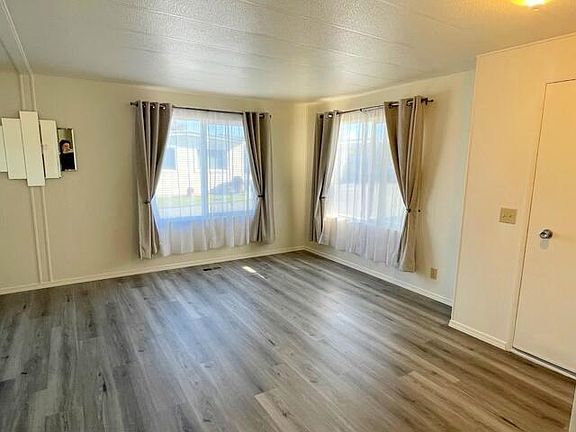 Beautiful manufactured home located in the coveted Royal Crest senior park! This spacious 2 bed 2 bath home was just remodeled with new plank flooring, paint inside & out, new fixtures, vinyl windows, garbage disposal & much more. Deck newly stained. Built in hutch in living area. Ceiling fans in all main rooms. The master bath has been remodeled with a custom marble counter top. This home has multiple sheds for all your equipment and storage purposes. There is a small shop complete with electrical and work benches. There is a newly stained covered deck for relaxing and covered parking. This home is move-in ready for you to make your own. Schedule a showing today! Buyers must get park approval.