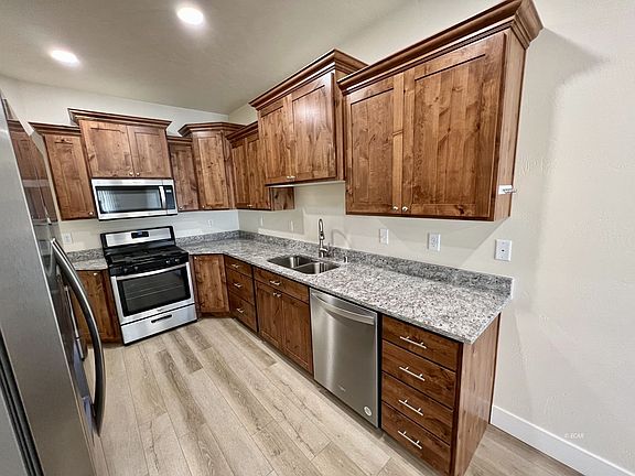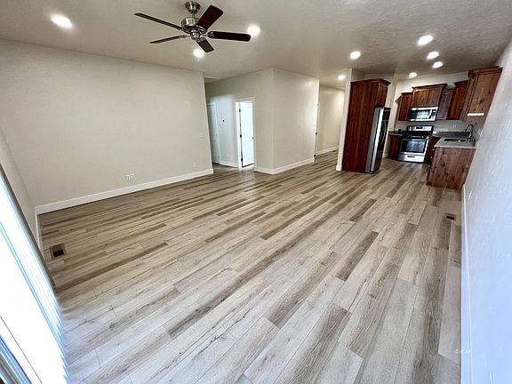 2 bedroom, 2 bath townhome located at The Townhomes at Ruby View. You will love the luxury and ease of ownership in this practically brand new townhome. The home has luxury finishes such as vinyl plank flooring, and granite counter tops. The kitchen features a gas stove and pantry. Extra large master bedroom with walk-in closet. Master bath has a hanging door, dual sinks and walk-in shower with safety rails. Safety rails have been installed in the second bathroom as well. The two car garage is insulated. This home has a water softener, natural gas water heater, high efficiency furnace, low-E vinyl windows, sound proofing between units, a fenced backyard with open patio and rock landscaping. Property management is currently working on additional landscaping and plans to install a shaded area on a concrete pad between units for residents to use for BBQing and gatherings.