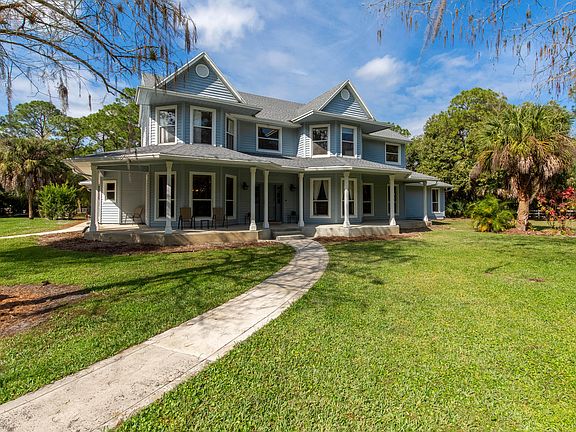 Don't miss your chance to own this private lush 5 acres. Build your own equestrian paradise. This equestrian community boasts 29 miles of riding trails accessible right from your back yard. Property has a beautiful 5 bedroom 4 bathroom home with a wrap around porch. Over 1,000 sq ft of finished garage space, with workshop that could be converted to a separate apartment or stalls. Two gated entrances give you the perfect open space to build the barn of your dreams. Plenty of space for paddocks and arena. Home is equipped with a whole home generator. Fox Trail is located just 7 miles from the Wellington International show grounds.