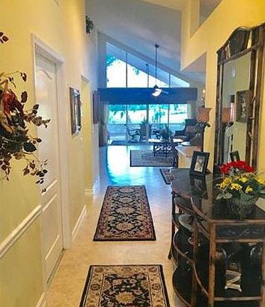 This 3 bedroom and 2 1 2 baths gorgeous single family villa offers one of the best views in the community. Sitting on the river that flows through the backyard and the amazing view of the golf course makes this a must see! This high vaulted ceiling home offers updated appliances throughout and has been maintained extremely well. Both the first floor master bedroom and guest bedroom have beautiful bathrooms and walk in showers accompanied with walk in closets. The 3rd bedroom was made into a den with an office in the closet.New air conditioning unit installed last year , updated kitchen with granite counter tops and bathrooms that have quartz counter tops. This home is move in ready! Community has a pool with clubhouse, tennis courts and friendly neighbors. Just minutes from the beach and local restaurants.