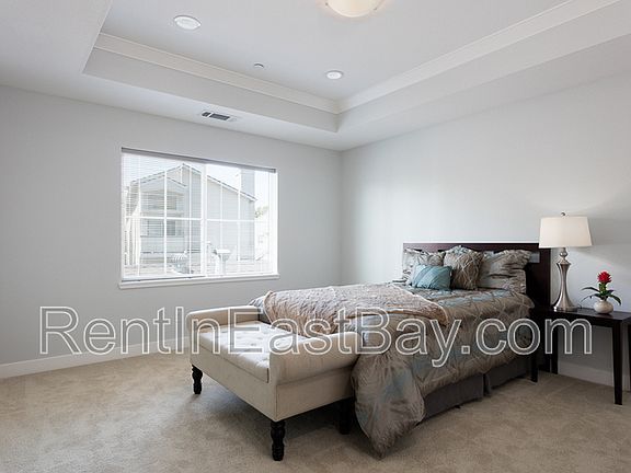 Bella Tierra Homes Since Zillow application is limited, we require all applicants to complete our application as well. This new luxurious home (built 2017) on a private street is ready to be your home. The home is beautifully crafted with warm color scheme throughout. Stainless steel appliances and luxurious finishes bring fresh and original atmosphere throughout the home. Other wonderful features of the home are: New carpets Kitchen, family room and dining area on ground floor. Second floor has 3 bedrooms, including the master, and 2 baths, plus laundry. Third floor has one large room with bathroom and an enclave that can be used as a study or to fit an armoire and be used as a bedroom. Attached 2 car garage to fit two large cars A/C and heat separately zoned Stainless steel appliances and luxurious finishes throughout Stove, refrigerator, dishwasher, and in-unit washer and dryer included and provided as a courtesy, all energy efficient Beautiful flooring - a mixture of carpet, tiles and LVP wood Walk-in closet and separate shower and tub enclosures in master bedroom Customized mini blinds and beautiful color scheme throughout Private backyard and lush landscaping throughout Security alarms and camera, Central A/C Picnic tables and barbeque grills Near Shoreline Marina offering boating, golfing, biking and equestrian trails Close to Lake Chabot offering fishing, camping, and hiking Walkable to BART, Bay Fair Mall, and restaurants All utilities paid by tenants. NO SMOKING. Minimum household income is 2.7 times the rent. Minimum FICO is 670. One additional carport parking is available at $75 a month. Pets allowed at $50/month charge added to rent. We must meet and accept the pet. Maximum one pet and maximum size of 20 pounds. Pets must be approved and registered with https rentineastbay. The photos may not be of exactly this home. Square footage is approximate Unit amenities Situated in newly developed 13 unit condominium cul-de-sac