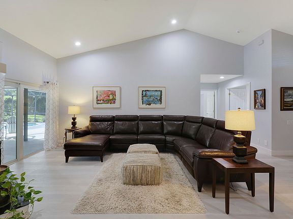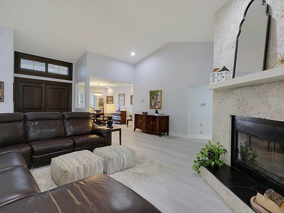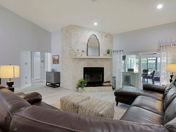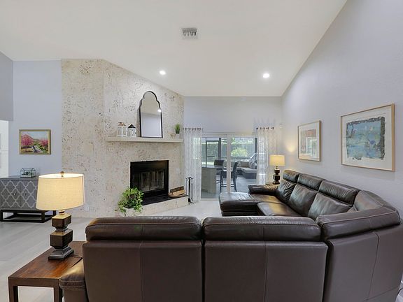 Sellers are offering $15,000 seller concession toward the buyer's financing, prepaids, and closing costs!!! Luxury living in Wellington, in the Meadow Wood community! This home is perfectly nestled on a cul-de-sac.The entryway boasts solid wood front doors, impact windows, sliders, and garage doors. This meticulously crafted home features a new, beautiful gourmet kitchen with all wood soft-close doors, GE Monogram SS appliances with wifi features. LVP flooring, plantation shutters, and fresh paint inside, and a fireplace. The back porch is perfect for entertaining with its wet bar, a large fully screened pool with new screens and doors, an outdoor patio, a new salt system pool, and a fenced yard. The 3-car garage and spacious circular driveway add to the convenience and allure of this remarkable home, making it a dream come true for those seeking both functionality and elegancy.