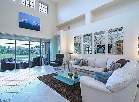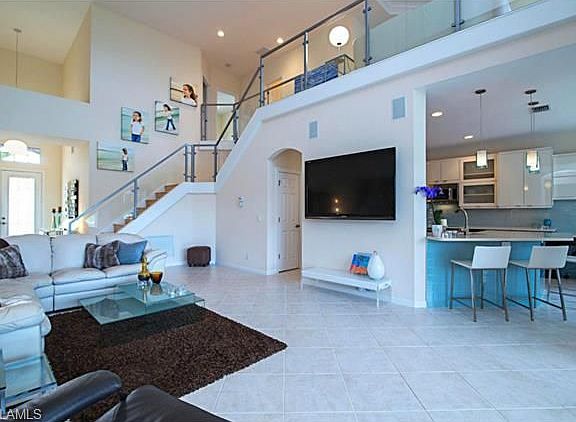 H.9279 - Rare opportunity to own this 2 story "Cielo" model in immaculate LIKE NEW condition! Shows like a model. Completely renovated 2 story pool/spa home w/a tasteful high end European flair. Nothing ordinary here! Many features including NEW Quartz counters, high gloss Wenge cabinets, Phantom electric sunshades, GarageTek organization system, stainless appliances, glass & aluminum custom bannisters, brick paver driveway & entrance, tile roof, pool/spa w/aqua link control system, large ceramic tile on diagonal & bamboo floors, volume ceilings, recessed lighting & much more. At 2453 sq. ft, this 4 bedrm +den, 2.5 bath home lives larger than its sq. footage w/efficient use of space. Quiet, private cul de sac lot w/lake views, one of the best locations in the community! Delasol is a low density gated community w/only 286 single family homes, on 147 acres, 62 of which are set aside for preserves, lakes & green spaces. Enjoy the clubhouse, pool, spa, lighted tennis courts, fitness ctr, basketball & play areas. Desirable North Naples location, situated off the Livingston Rd corridor, just minutes to famous Naples beaches, shops & restaurants.
