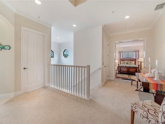 BEAUTIFULLY MAINTAINED! Call today to schedule your private showing of this STUNNING 2nd floor coach home in Prentiss Pointe. Your new home offers 3 bedrooms, 2 baths, over 2300 sq ft under air, attached 2 car garage, and ... PRIVATE ELEVATOR! Kitchen is light & bright with white raised panel cabinetry, granite countertops, breakfast bar, plus cabinet & counter space galore! Breakfast nook (or office area) is just off the kitchen. Living room boasts expansive sliders that open to wrap around veranda with partial lake view. Crown molding throughout main living areas, plus kitchen & master suite; 11' ceilings throughout! Generous guest rooms ~ ideal for full time living or a home away from home. BONUS room above garage could be 4th bedroom, media room, study, or game room. A FANTASTIC Mediterranean themed, gated community of coach homes, Prentiss Pointe offers a myriad of amenities ... pool, spa, fitness center, billiards, clubhouse, and tennis. Just 5 miles from the beautiful beaches of Southwest Florida, and close to shopping, dining, schools, hospitals and all that the Fort Myers area offers. Used seasonally, this home is move-in ready. At this price, it's time to MOVE!
