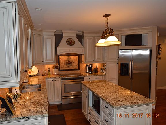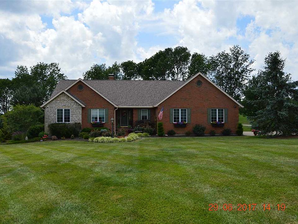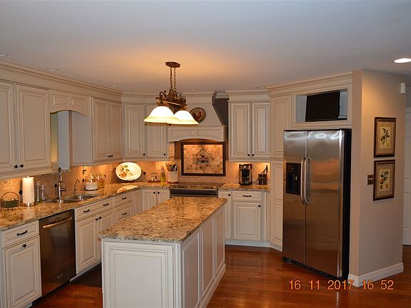 Beautiful 5BR 3B Ranch on 2+Acres! Lake Front property in Immaculate condition! Upgrades thru-out. Lovely kitchen cabinets w. crown molding & granite counters. Wonderful WoodFlrs n entry/hall/kitchen & dining area. 2wood burn fireplaces. Finished basement w spacious family rm, wet bar, frig, built-in shelving with lots of storage. Oversized 2 car garage, xtra space on MainLvl. 3rd GarageSpace n LL