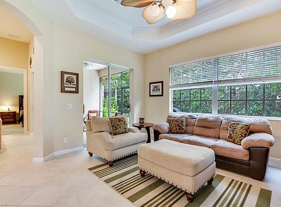 Enjoy the best of South Florida living in this highly desirable gated community located in the heart of Naples! You will love the layout of this meticulously cared for home offering over 2,100sf of living space w/ a living room, family room, 3 bedrooms, and a den. There is plenty of room to add a pool if desired-currently the home has a screened lanai all under truss and an open paved lanai (new pavers installed in 2016) that is perfect for grilling & a fire pit area. Some of the bells & whistles in this home are volume ceilings, arched entryways, an elegant entry w/ arched window, French doors to the den, plus the washer & dryer are only two years old, the A/C was replaced just 3 months ago, a new water heater was installed last month, and the owners have recently updated the landscaping. Delasol, a family-friendly active community, is gated with a guard 24/7 offering 271 homes and resort-style amenities-including clubhouse w/ a library, tennis courts, amazing community pool & spa - all situated on 147 acres of lakes & nature preserves. Over half of Delasol's land is preserved for the natural landscape of Florida, creating a beautiful place to call home.