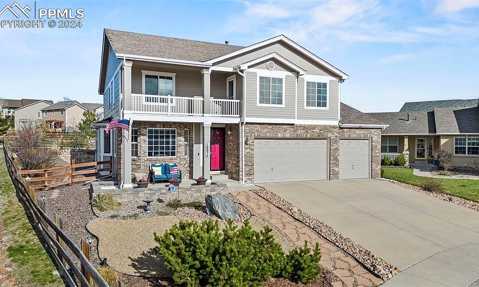 This Jackson Creek home has it all! Bring your toys, this home comes equipped with an OVERSIZED 5 car garage which is a rare find. Enter the home to find hard wood floors and a light filled front sitting room/formal dining space. Continue through the home be we welcomed by tall expansive ceilings, large inviting windows, and a focal point gas fireplace with mantel in the living room. The kitchen comes equipped with an expansive island, double ovens, spacious pantry, and a breakfast nook. Main level powder bath is perfect for guests. Enjoy Colorado evenings from your backyard that is easily accessible from the kitchen. Full landscaping and turf grass are low maintenance and well established to enjoy! Upstairs you will find a generous primary suite complete with private balcony that has incredible mountain views, 5 piece en-suite bath with jetted tub, and walk in closet. Two additional bedrooms, a full bathroom, and convenient laundry space all are located upstairs as well. This home will stay cool the summer with newer central air system. Newer hot water heater will keep the hot water flowing! Unfinished basement downstairs offers unlimited potential with 9-foot ceilings, plumbing for a bath, potential theatre space, extra bedroom, or gym! This home is located on a cul-de-sac, and convenient access to shopping, I-25, and schools.