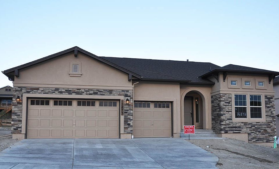 Paradise floor plan, Ranch plan, 3,748 sq. ft., elevation "C" with stucco and stone exterior. Four bedrooms (one more bedroom possible in basement), three baths, three-car garage with pre-wires included for possible openers. Finished basement. Master Bedroom and Bedroom 2 on main level. Formal and informal Dining areas. Butler's pantry included between Kitchen and Dining Room. Master Bath includes door between bedroom & bath, walk-in closet, tile flooring, oval soaking tub, separate shower with seat and poured mudset pan, and slab Granite countertop with dual undermount sinks. Kitchen includes Butler's Pantry, breakfast bar island with pendant lights, canned lighting, upgraded Maple cabinets with 42" uppers and under cabinet lights, upgraded Quartz countertops with full tile backsplash, Blanco Performa undermount sink, and alternate appliances layout including stainless steel built-in wall oven and microwave, smooth-top electric cook-top (gas line included for possible gas cook-top upgrade), and dishwasher.. Gas fireplace with stone face and wood mantel in Great Room. Hickory hardwood flooring with random-width planks in Entry, Hallways, Great Room, Dining Room, Kitchen and Nook. Tile flooring included in all baths and Laundry. Upgraded tile accents in baths. Upgraded carpet with 6 lb pad. 50-gallon water heater. 96.5% efficient gas furnace. Rounded bullnose corners. A/C prep package. Knuckle iron pickets at stairs. Optional window included in Breakfast Nook. 2" faux wood blinds included in main level beds and baths. Oil rubbed bronze hardware and bath faucets. Upgraded Toasted Sienna interior lights. Ceiling fan pre-wires included for possible fans in Great Room and Master Bedroom. Dedicated outlet added to Garage. Outlets added to Laundry, Foyer, and Dining Room. Brushed nickel floor outlet added to Great Room. Main level Laundry with fiberglass sink. 18x9 covered patio off Nook. Finished basement hosts two bedrooms, bath 4 (with dual sinks included), recreation room with gas fireplace with stone face and rough-in plumbing included for possible wet bar, and unfinished space with potential to be 5th bedroom. 1-foot taller ceilings included in basement. Lot #4 Block 17 in Phase 4 is 8,400 sq. ft. and backs east to small greenbelt and road. Front yard landscaping with sprinkler system included