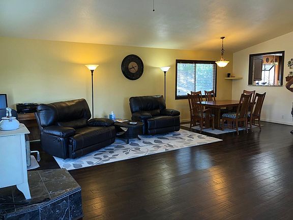 Tired of the hustle and bustle of city life? Then this is the place for you. Located on 2.02 acres and very private. Living room, dining room, kitchen, nook, and hall have hardwood floor. Upstairs beds have carpet. Living room has wood stove and french doors to deck with spa. Spacious master has 3 closets and ceiling fan. Master bath has jetted tub, separate stall shower, dual sinks, tile floor, counter, shower and tub surround. Office with french doors, inside laundry, third room used as exercise room, lots of storage. Patio area, bench has view of ocean on a clear day. Two sheds - wood shed and storage shed.