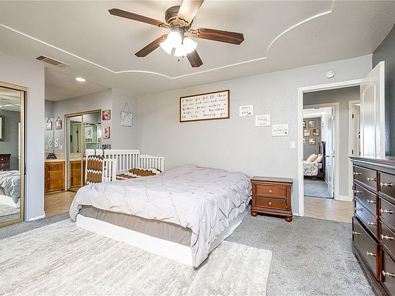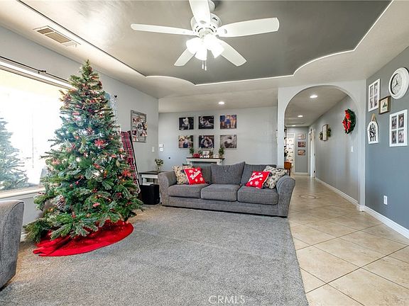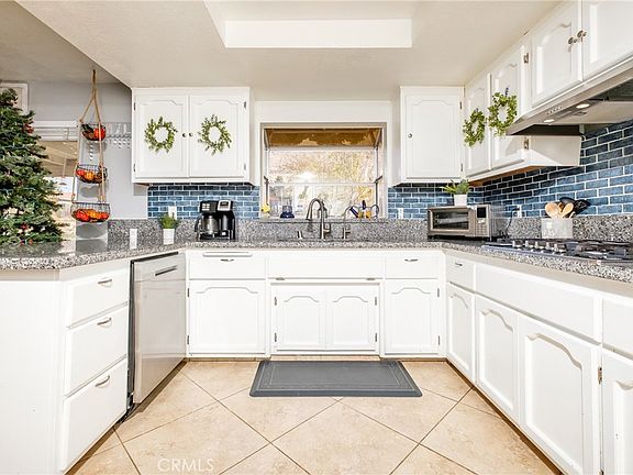 Welcome home to this charming 4 bedroom, 2-bathroom view home! This home is positioned perfectly on the oversized, more than half acre lot. The front yard features a circle driveway, paved access to the back yard shed on the south side of the home, and extensive siede yard cement on the north side of the home... with RV access! The back yard features grass, mature trees, gorgeous views of the Apple Valley rocky hills, and so much room for activities! The valley lights and mountain views can be enjoyed from the front porch, or through the large living room windows. The living room also features tile floors, a white brick gas fireplace, and updated lights and fixtures. As you make your way through the house you will pass through the oversized dining area, and it leads directly into the recently updated kitchen. The kitchen features white cabinets, beautiful granite counter tops, and stainless-steel appliances. Full 4 bedrooms, and 2 bathrooms! The master bedroom features backyard access, a walk-in closet, and an attached master bedroom. Set your appointment today to view this one-of-a-kind home!