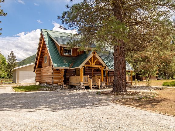 Waterfront Log Home on a gorgeous 1 acre parcel featuring beautiful low bank Wenatchee River frontage. located on a quiet dead end road, peace and serenity abound. Vaulted ceilings and open floor plan give an extra spacious and inclusive feel. 1225 Square foot basement could be finished to create extra living space, or supplies ample storage. . Located in the heart of recreation country hiking, biking, rafting, are all just steps from your front door.