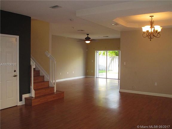 Spacious 2 story single family home, fenced yard, stainless appliances, granite counters, one bedroom and full bathroom on first floor. Two car garage, washer/dryer upstairs. Laminate floors, master has separate sinks and soaking tub. Located near Canosa Middle as well as Publix and Costco.