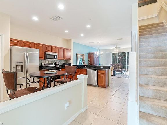 H.16136 - Immaculate Milano townhouse - Must see - shows like a model! Exceptional value for a well maintained 3 bedroom, 2.5 bath North Naples home. Attached garage, high volume ceilings and tile throughout the first floor. The kitchen is beautiful with granite counter top sand stainless-steel appliances. The spacious great room transitions to your private screened lanai offering a great space to enjoy with friends and family. The owner's suite includes a large walk-in closet, vaulted ceilings and dual sinks in the master bath. Low HOA dues include internet, cable, landscaping, exterior insurance and more! Milano amenities include a basketball court, two tennis courts, and a community pool and spa. CCPS shows A rated schools. Conveniently located and a home you will want to add to the top of your list to see. Home is being sold unfurnished, however furnishings are available for purchase at an additional cost.
