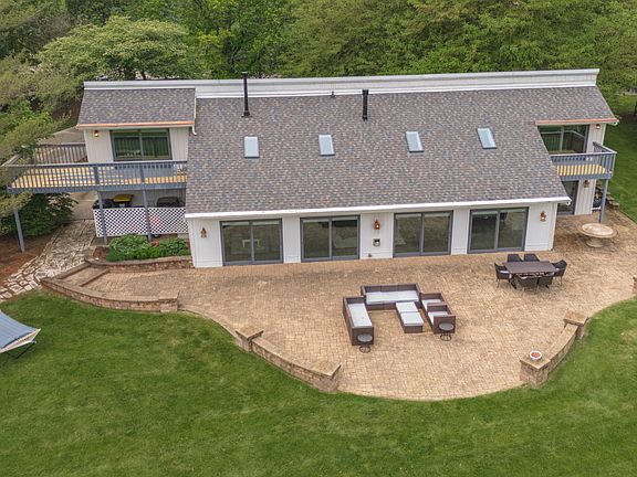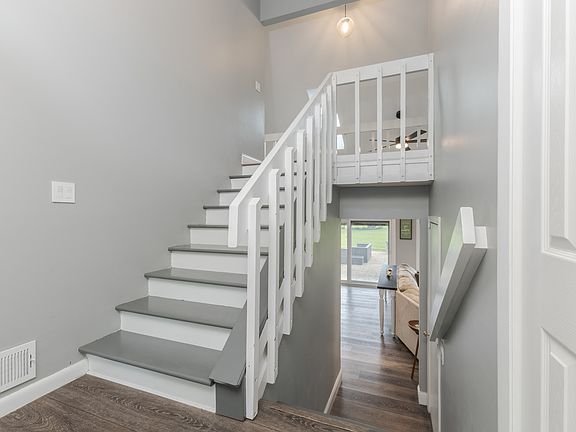 Introducing this beautiful, unique home. It is situated on .96 acres backing up to Crestwicke Golf Course! It has been meticulously updated and enhanced for modern living! In 2022, along with a total tear-off roof plus new skylights...this home received a complete transformation! Including new luxury vinyl plank floors (FR, DR, office, upstairs hallway, entry way, 4th BR, kitchen, 1/2 bath/laundry room) new carpet in (primary BR, 2nd BR, 3rd BR), new baseboards, a complete renovation of 1/2 bath, new water heater, new main level interior paint, new ceiling fans, and new light fixtures! The main level features a FR, dining area, office, kitchen, and 1/2 bath/laundry room, all boasting new finishes. Upstairs, new carpet graces the primary, 2nd and 3rd BRs. New fans, light fixtures, can lights, and switches add a touch of elegance. Further upgrades in 2024 include a complete renovation of the primary bathroom with barn-doors, updated 2nd full bathroom, new interior paint upstairs, new ss fridge, and both decks refurbished. This 2708 sq. ft. home offers breathtaking views of #5 green & #6 tee-box! The vaulted FR leads to an expansive paver patio overlooking the course, with 5 slider doors that bring the peaceful outdoors in! Additional features include corner lot, Heyworth schools, public sewer, steel siding, 2 HVAC systems, ss kitchen appliances, quartz countertops, a primary BR with vaulted ceilings, 3 closets, and deck overlooking the golf course! The 4th BR showcases gorgeous built-ins with granite desktop plus another deck with golf course views. Lastly, there is an oversized 2-car heated garage plus golf cart "carport." Don't miss the opportunity to own this exceptional property that combines luxury, comfort, and style in an upscale, prime location!