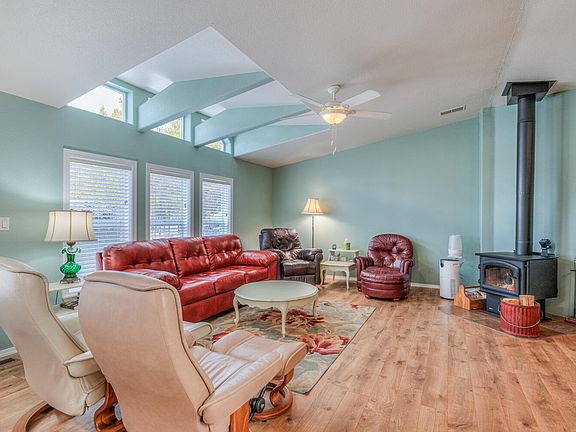 This beautifully cared-for home sits on a spacious 1-acre lot, offering the perfect balance of comfort and practicality. The home features a large covered patio, updated laminate flooring, and abundant built-in storage throughout. Stay cool in the summer with AC and cozy up in winter with a new certified wood stove. The oversized 3-car garage is insulated with R36, finished with sheetrock, and boasts 9-ft ceilings. There's plenty of space for RV/boat parking, a workshop, and a paved driveway. Located in a peaceful neighborhood with mature landscaping, this property offers both privacy and beauty. Just a short drive to town and close to rivers, forests, and Paulina Lake. An additional 1-acre lot (#220187025) is also available, perfect for expansion. Directions: GPS works! From Hwy 97 South, take Burgess Rd. West, then turn North on Day Rd. Follow Sunrise Blvd.