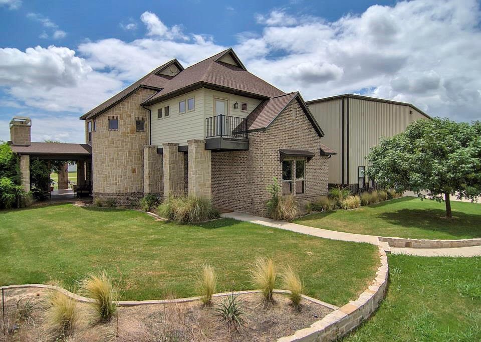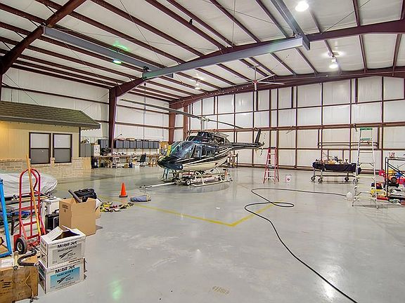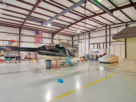 Castle-Style Home & Hangar on 1-Acre In Propwash Airport [16X], Justin, TX. Live With Your Plane & Be the King/Queen of your own Castle-Style Home & Hangar Curved Staircase Wine Grotto Granite in Kitchen, Baths, & Wet Bar Stone WBFP in Great Room with electric shades. Master Bath with Dual Shower Heads. Huge Wrap-Around Covered Patio with Stone WBFP. 75/ x 75' Huge Hangar Features include: 5,625 Square Feet 65' X 20' Bi-fold Door with two 220V Motors 14' Roll Up Electric Door 10' Roll Up Electric Door & Opener Overhead Hoist Mounted on Roller Dolly covers 90' X 90' Area 2 Big Ass Fans with 14' Blades Apartment inside Hangar Office with Kitchen, Full Bath, Bedroom, W&D Connections 3000' Paved Runway + Dedicated Taxiways. Public Access Airport, Privately Owned by Propwash Homeowners.