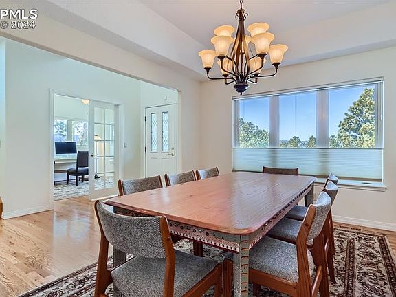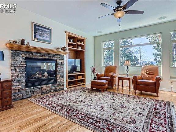 Nestled in the forest yet with fast & easy access to COS, Castle Rock, & Denver. Step inside this custom home to discover a flowing interior that seamlessly integrates w/ views of natural beauty just beyond every window. Upon entering, to the right is a library w/ bay windows & tranquil Front Range views. To the left a graceful dining room w/ a tray ceiling looks out toward Palmer Lake. Hardwood floors throughout the main level. The open concept living spaces are flooded w/ natural light, & the stone fireplace creates a warm & inviting atmosphere. The welcoming kitchen, equipped w/ stainless appliances, a pantry, tiled countertops, an island & breakfast area, is ready for family gatherings & entertaining guests. The light & bright laundry room is conveniently located off the kitchen & features a countertop w/ a sink & plentiful cabinet storage. Each of the four bedrooms provides unique mountain or forest views. Three well-appointed bathrooms across both levels. The primary suite, w/ a spa-like bathroom & a large walk-in closet, is a true oasis, showcasing sweeping panoramic views of Pikes Peak. The up & down shades throughout provide enjoyment of the outdoors w/ privacy. The aerie-like atmosphere of the upstairs loft creates an amazing space for an additional office or a playroom w/ a view of the Air Force Academy. Option to use either the whole house fan or air conditioning in this immaculate home, along w/ the whole house humidifier for comfort. The fully insulated basement, plumbed & with a dedicated second furnace, is waiting for your vision to create additional living areas. The heated & finished oversized garage provides generous space & add'l storage. The outdoor living areas feature ample room to enjoy the wildlife w/ distance & privacy from the neighbors. Located in the desirable Ridge at Fox Run neighborhood w/ close access to the Fox Run Park trail system, this quiet & secluded .60 acre sanctuary is just moments away from city amenities.