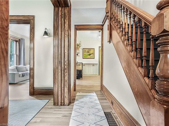 Welcome to this beautiful yellow-brick century home on Fifth Avenue West, Owen Sound. Nestled on a quiet street near the Pottawatomi River and Kelso Beach, this home is ideal for families looking for space, charm, and modern conveniences. The home's classic exterior features a welcoming covered porch with elegant black columns and thoughtful landscaping. Inside, original woodwork, pocket doors, and gleaming floors showcase its historic character, while modern updates make it move-in ready. The spacious kitchen blends rustic charm with stainless steel appliances and opens to a stunning backyard. Upstairs, the home offers three large bedrooms and two bathrooms—an uncommon find in homes of this age. The third-floor primary suite provides a peaceful retreat, filled with natural light. The highlight of this property is the backyard oasis, complete with a serene garden and a rare 16-foot-wide energy efficient, low maintenance swim spa! Perfect for year-round relaxation and fun. The spa doubles as a hot tub and hydrotherapy pool. Come view this today! This home offers the perfect combination of historic charm, modern comfort, and a backyard retreat unlike any other.