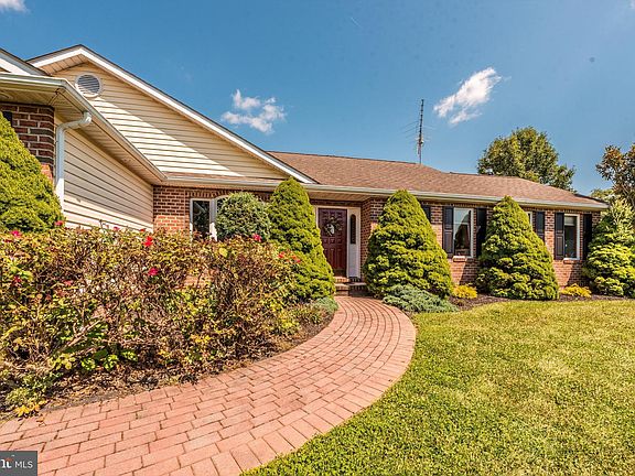 Wow! You'll want nothing more than to come home to this custom ranch home on just under 3 bucolic acres overlooking rolling farmland hills and backing to crop fields in Westminster. When we went to take interior photos, there was a huge rainbow right in the front yard spanning the valley - the views are absolutely breathtaking! Built in 2000, this sprawling, charming house features gorgeous hardwood floors throughout. Walking through the foyer (although you'll want to stop and turn around to take in the views again!) brings you to the gourmet kitchen open to living area. The kitchen has ample upgraded cabinetry and counter space, stainless appliances, a breakfast bar overlooking the living room, and room for a dining table - plenty of space for meals, gatherings, and entertaining! Windows span the back of the home overlooking the patio, mature landscaping, and gazebo right outside the kitchen. The formal dining room across from the kitchen offers amazing views and coffered ceilings. The laundry and mud room is right off the oversize 2 car garage, with multiple coat and linen closets throughout the first floor - storage is NOT a problem anywhere in this home! The primary bedroom suite is large, bright, and airy, with double doors, tray ceiling and full bath with dual vanities and large shower, as well as a spacious walk in closet. Two other bedrooms with hardwood flooring facing the scenic overlook are on the other side of the home as well as a full bath with tub/shower combo and updated vanity. Downstairs, the fully finished basement contains a huge family room, craft room (any craft lover can't help but be inspired the second you walk in!) that could service a variety of purposes, which contains additional closet storage and is directly connected to another full bath with shower/tub combination and double linen closets. The expansive basement continues, with an additional bedroom with egress and closet, and another room that could be used as a bedroom, office, game room - this basement has SO many possiblities, including an in law suite! Finished off by a utility and storage area with walk-out stairs up to the back of the home. Outside, find an immaculate, oversized 32x26 garage with drywall, electric, ceiling fans, and 12x10 workshop in the back with work benches, cabinetry, and additional outlets. Perfect for the car enthusiast, projects, etc! There is also a paver pathway leading from the garage to the patio off the back of the home. This property is situated on just under 3 enchanting acres, with the large, completely usable backyard being completely private, and backing to a field currently planted - an additional outbuilding has been used for chickens and goats in the past! The expansive front yard gently slopes down to the private lane. You won't want to leave!