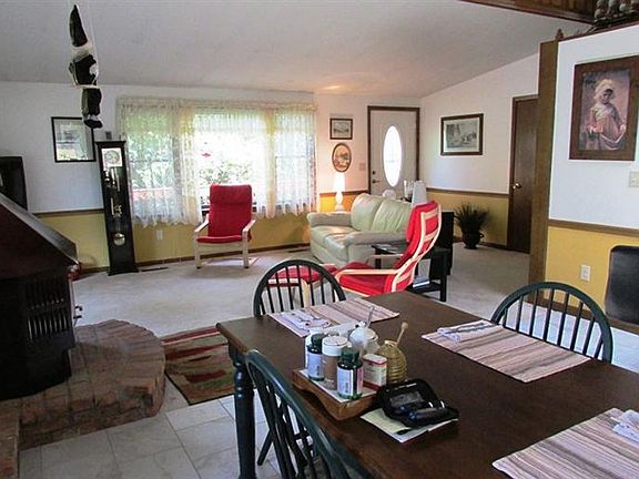 Fantastic updated ranch across the street from the lake! Sit on one of 2 covered decks & enjoy a lake view! Walk across street to waterfront rec area! Open floor plan with vaulted ceilings & sky light! Two lots, fenced with mature trees!