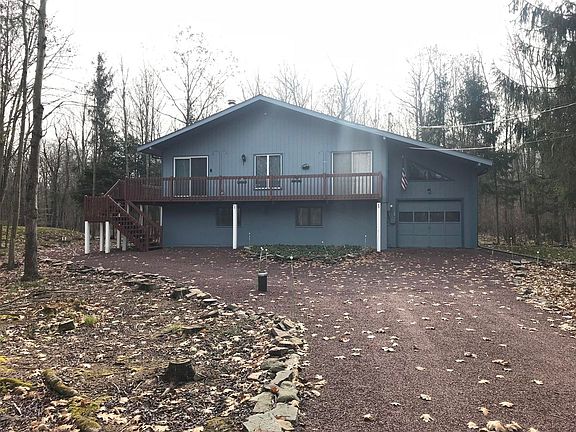 A TRUE GEM! LOCATION (AMAZING) Boat lauch across street & seasonal lakeview! SHORT WALK TO BEACH, TENNIS & PLAYGROUND. Two stories w/ 4 BEDROOM, 2 BATH, 1 CAR GARAGE, FINISHED LOWER LEVEL OFFERS FAMILY/GAME ROOM W/ NEW CARPET, New appliances, whole house dehumidification, DRY AS A BONE! Whole House Water Filtration! Brand New water heater! New Bath in lower level! IMMACULATELY MAINTAINED INSIDE/OUT. Floor to ceiling windows and sliders lead to large wrap around deck. 2 wood/coal burning stoves, one on each level for extra heat efficiency. Property has 3 lots, NO neighbors either side or back. Located in amenity filled Locust Lakes. Stocked for great fishing! Beaches, pavilions, snack stands, playgrounds. 2 sheds. WOULD MAKE A GREAT RENTAL OR FAMILY GETAWAY W/ THE LOCATION AND SPACE