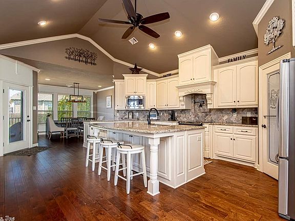 Fabulous one level with an amazing layout! Inviting front porch welcomes you to this all brick home with open floor plan. Tall ceilings, beautiful hardwoods, gourmet kitchen with pantry, beautiful cabinets with spice racks, pot-filler, huge granite island with storage. Rock fireplace in family room, nice size dining area, separate office. Covered outdoor back patio, privacy fenced. Dreamy master bedroom bath with large closet that leads to laundry room.