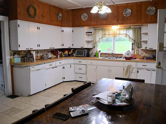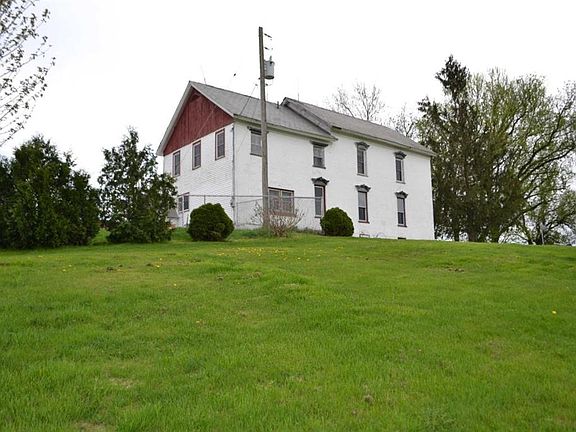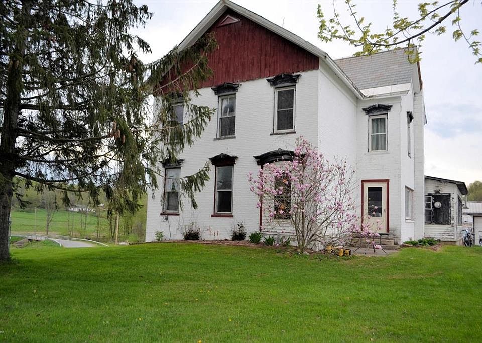 Wow! So much potential in this enormous brick farmhouse. Located on 1.20 acres, surrounded by fields and farms, with lovely views. Home needs TLC but very livable. Large open, eat-in kitchen with tiled floors, first floor laundry room with tile, first floor bathroom and high ceilings. Large dining room/den, family room and first floor bedroom. Original hardwood floors throughout, mostly all new windows but a few and large second floor bathroom. Home had oil heat but converted to coal. Enclosed 3 season side porch, 2 car detached barn garage and shed. (telephone poles around lot delineate lot lines). Sold as is.