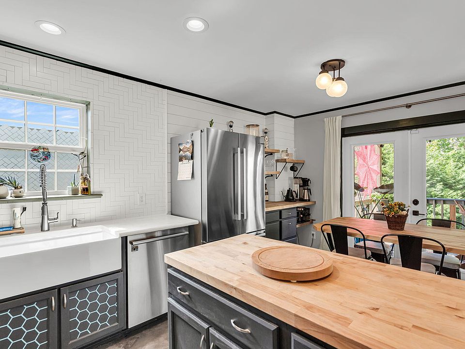 Glorious screened-in back porchOpen conceptCurb appealShaded backyardRemodeled primary bathroomDual farmhouse sinksLarge tiled walk-in shower