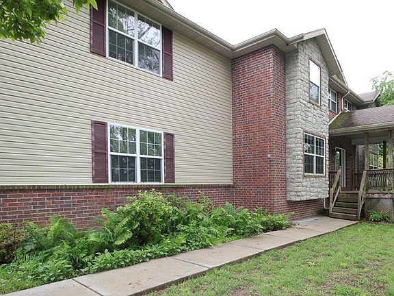 You will be amazed at the natural lighting on all 3 levels of this 6 BR, 4 BA home located on 3 acres just West of Nixa. There are living areas on all 3 floors! The open floor plan on the main level is very inviting with arch doorways, great cabinetry, pot hanger light fixture, granite tile counter tops & pantry. The front room would make a great office or formal living area. Nice wood floors in many rooms & newer carpet in the walk-out basement. Main level Bedroom has adjoining bath. Upstairs is a huge master suite with walk-in closet, corner jetted tub, walk-in shower & vanity seating separate from the sink area. 2 more BRs, Jack & Jill bath, convenient laundry room & large living area complete this floor. The walk-out basement has 2 more BRs, bath, family room & bonus room that would make a great media room. There is a zoned HVAC system & 2nd water heater for this large home. The 32'x36' outbuilding provides additional garage space, loft storage and workshop with cabinets. There is an additional shed, a stocked pond & wet weather creek to complete this wonderful country setting. Come imagine how you could utilize all the space offered by this great home and acreage!