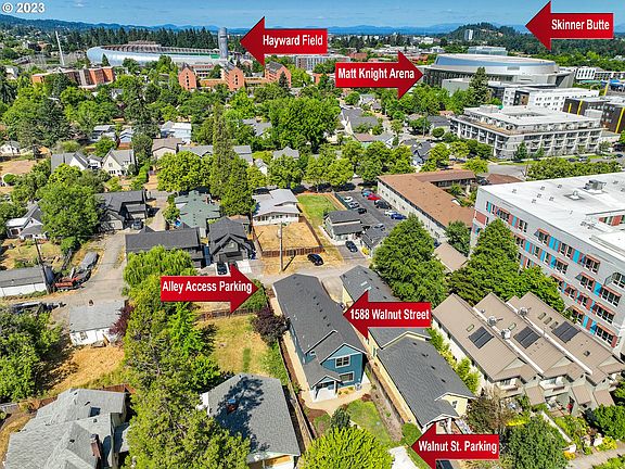 University unicorn! Luxury in the heart of the university. Large Home with shop/garage built in 2019. 5 bedrooms, 3 full baths, plus 2 half baths, as well as spacious primary suites on both levels, make this property a wonderful primary residence or an excellent income property. The incredible 879 square foot garage/shop offers 12' high ceilings and a half bathroom with ample alley access lending it to multi-car, boat & RV parking (It also may qualify as an ADU: inquire with city regarding potential ADU possibilities). Inviting open concept main living area with luxury finishes and abundant storage. Gorgeous custom kitchen with large eating bar, Quartz countertops, premium stainless steel appliances including gas range & refrigerator with ice/water. Fantastic mud/laundry room for top notch functionality. Convenient walking to the university, Matthew Knight Arena, Hayward Field, museums, restaurants, parks and more. Open Saturday 8/25, 11:00-1:00 & Sunday 8/27 12:00-2:00
